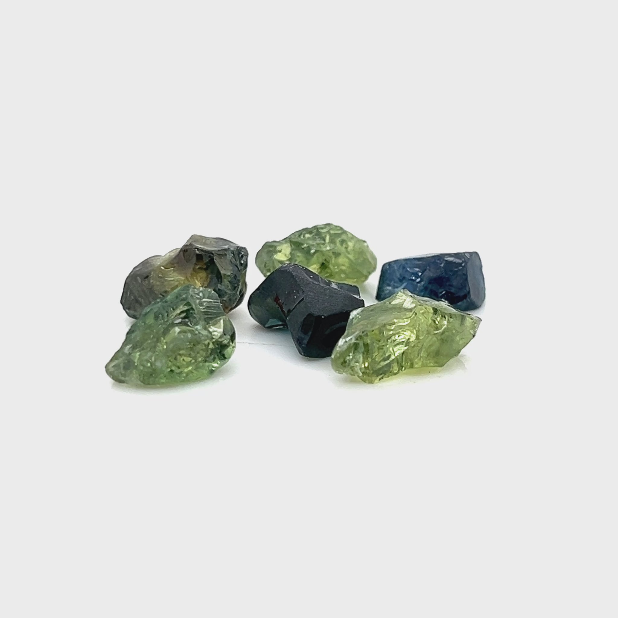 Unheated Sapphire from Africa in Blue and Green tones. Priced at $20 per carat. Sizes range from 2 to 3.5 carats per piece.