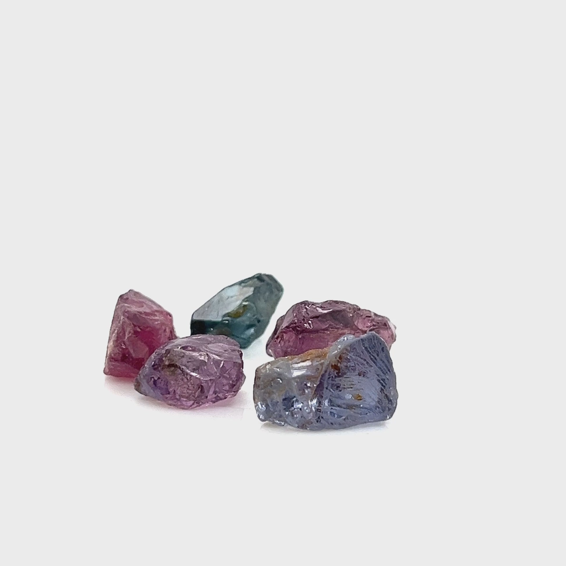 Spinel from Mahenge, Tanzania in beautiful shades of blue and purple. They range in size from 3 to 7 carats.